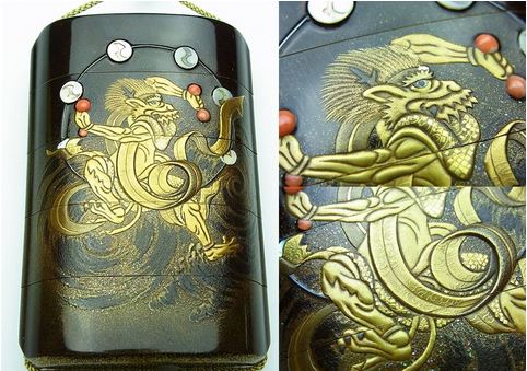 風神雷神 珊瑚青貝象 蒔絵 印籠がヤフオクにて販売されております。