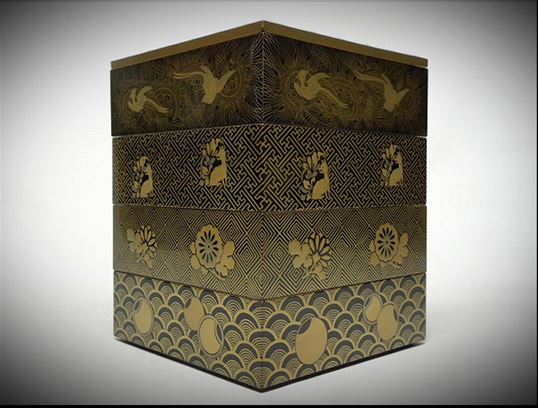 蒔絵で描かれている4段重箱です。