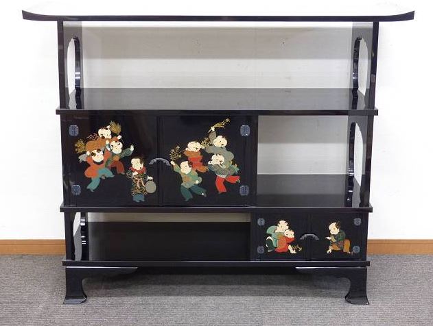 両陛下御来県時に使用された輪島塗 西塚朝光 唐子 蒔絵 飾棚が